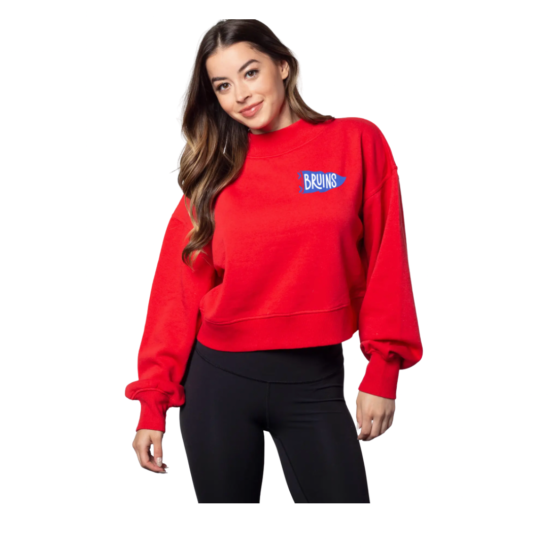 Spirit never looked so good. This cropped mock neck crewneck is the perfect mix of comfy, stylish, and put-together, featuring a signature Bruins pendant flag detail that sets it apart. With its elevated mock neck and trendy cropped fit, it’s an easy go-to for repping Creek spirit in style—whether you’re at the game, in class, or out with friends.
