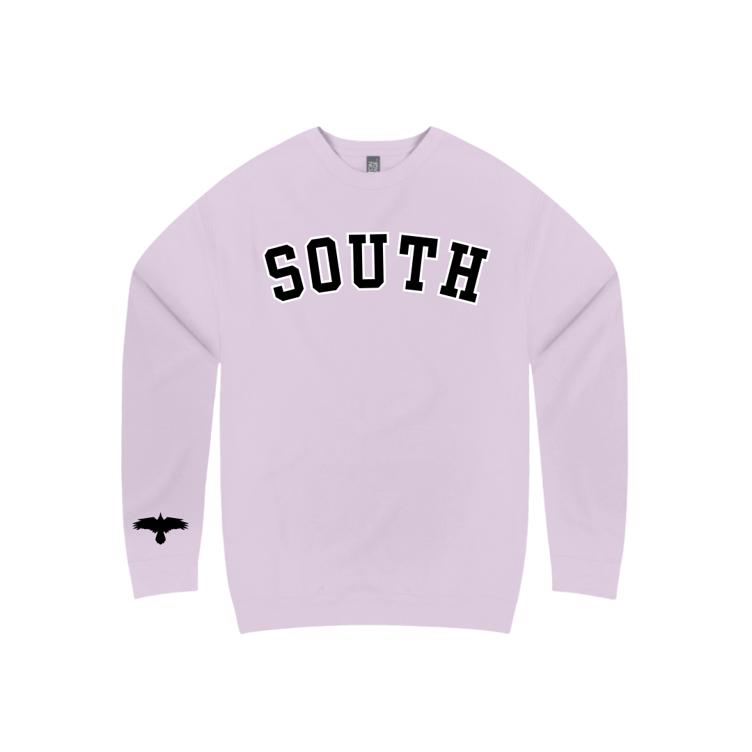 The ultimate blend of comfort and spirit, the South Gameday Crew is a classic crewneck made from cozy, super-soft 3-end fleece. Designed with a modern, slimmer fit that still gives you room to move, it’s perfect for layering or wearing on its own. Featuring bold “SOUTH” raised puff lettering across the chest, this sweatshirt brings standout style with a touch of retro athletic flair. For added spirit a Raven is featured on the back of the sweatshirt! Whether you’re cheering from the stands or hanging out with friends, this crew is your go-to for effortless gameday style.